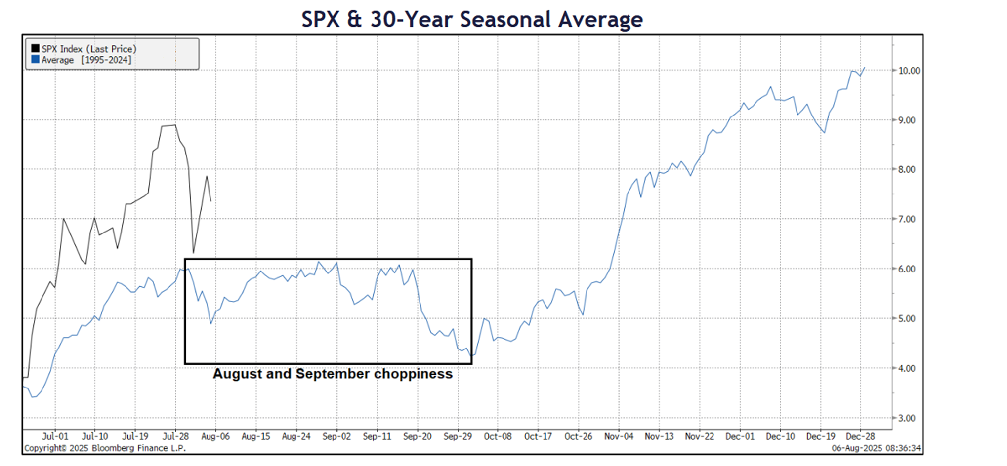 - A Choppy August and September. S&P 500 seasonal pattern shows risks are to the downside for the index.