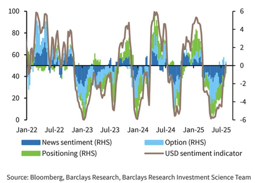 - Barclays' sentiment indicator for the USD has returned to a neutral position.