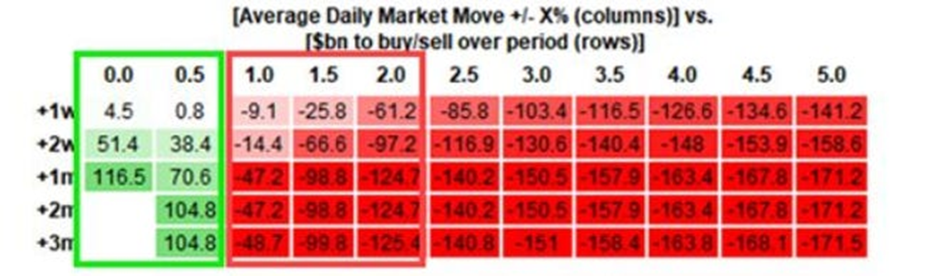 - Nomura: Vol Control funds are buyers if S&P500 trades with an average daily change of less than ±0.50%. Conversely, they are projected to be sellers on all timeframes (1 week, 2 weeks, 1 month, 2 months, 3 months) if S&P 500 averages above ±50bps.