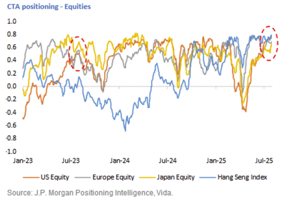 - JP Morgan's data on CTA positioning shows a similar net long story across most multiple major equity markets.