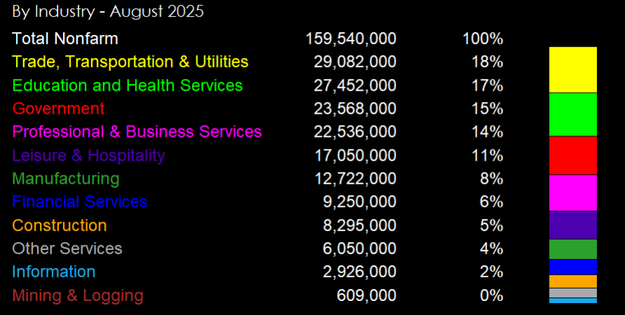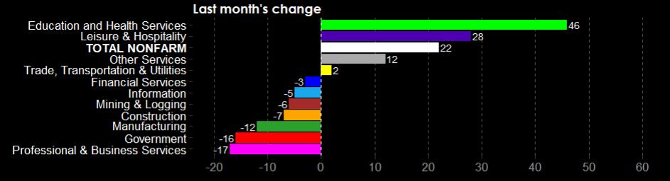 Generally, I like to focus on the top 4 or 5 largest industries when looking at payrolls data which is ranked as follows.