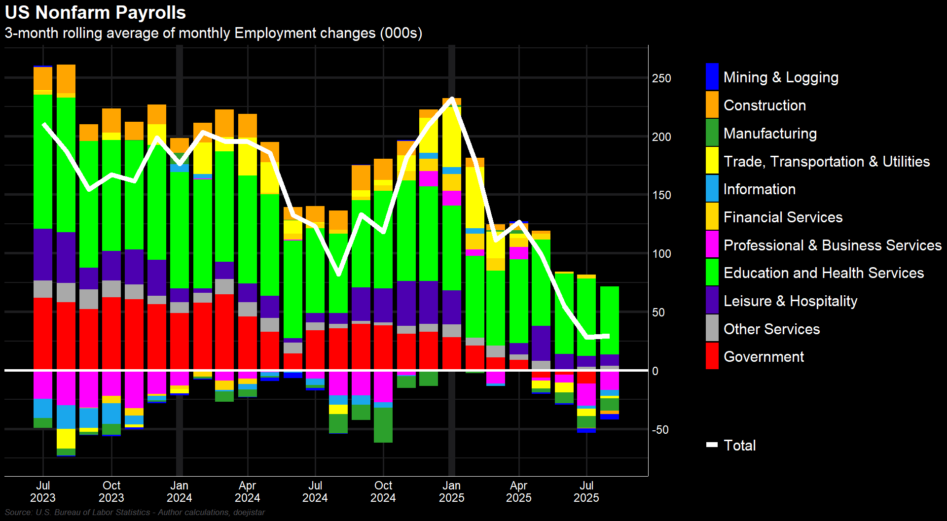 There is clearly a lot of uncertainty and reliability issues around the establishment survey figures given statistical assumptions in the sampling method being unable to reflect structural changes to the labour market that is seeing significantly low labour market churn, impact of AI on entry-level workers with youth unemployment ticking up, and most of all - accurately estimating the population numbers due to tighter immigration policies. As a result, it is difficult to assess how weak (if at all) the NFP numbers actually are.