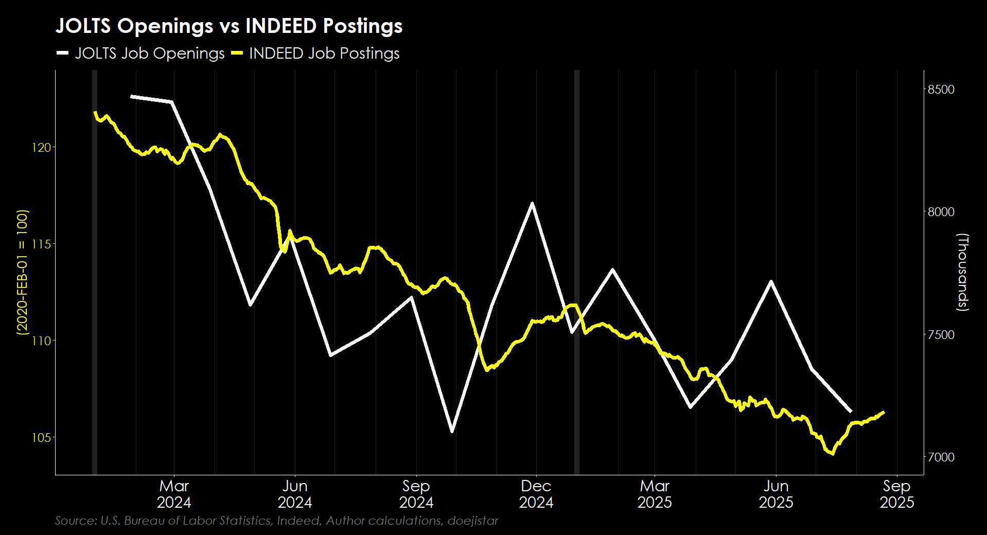 JOLTS, another BLS report that is showing a conflicting picture with other measures is also suggesting deeper demand weakness. The Indeed Job Postings index has seen a fairly strong rebound in July that has continued into August.