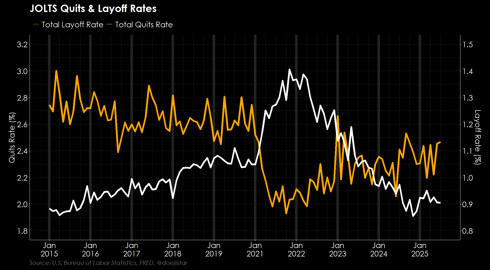 Layoffs are also rising, but it is still at historically low-levels and well below levels that has been synonymous with a healthy-ish economy.