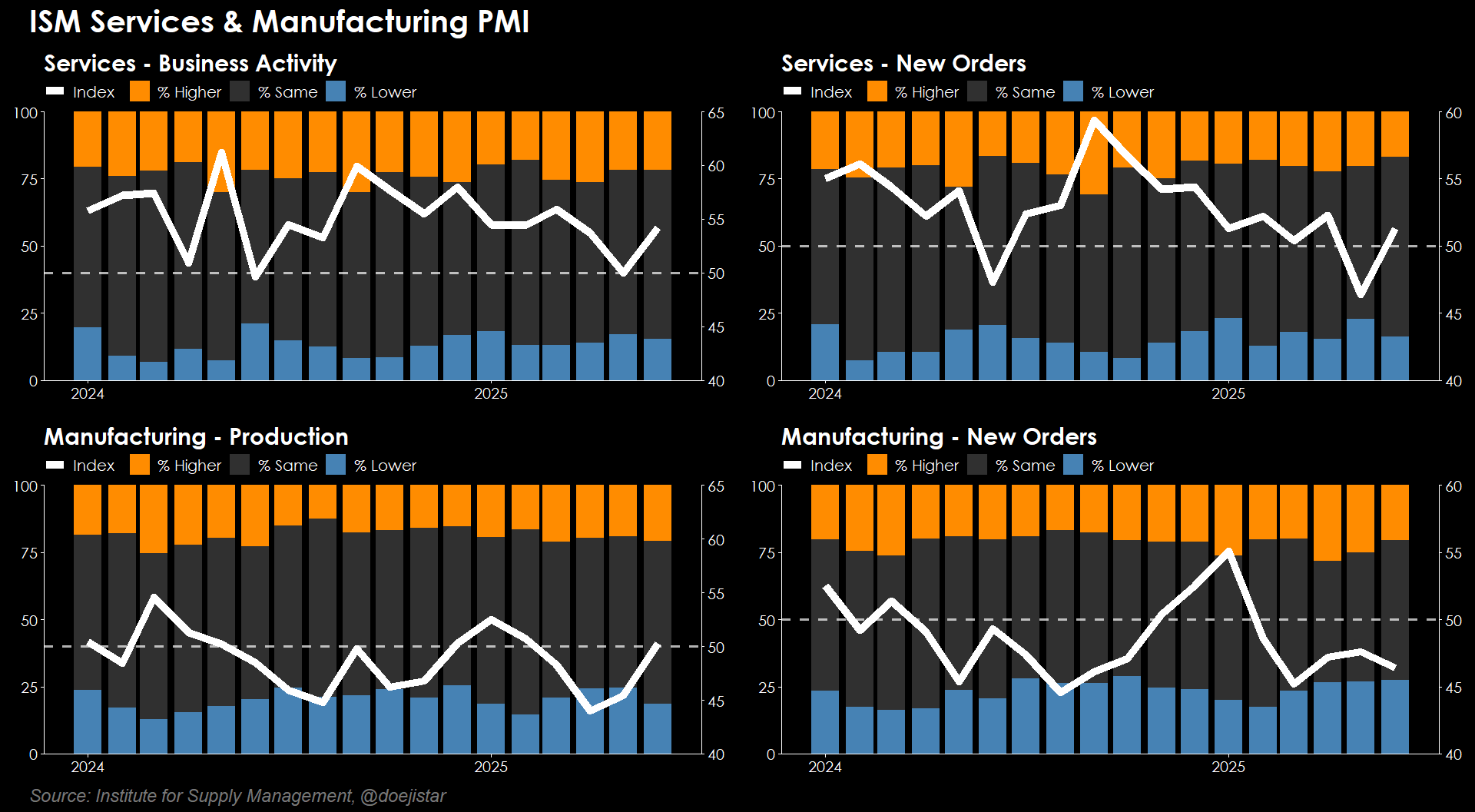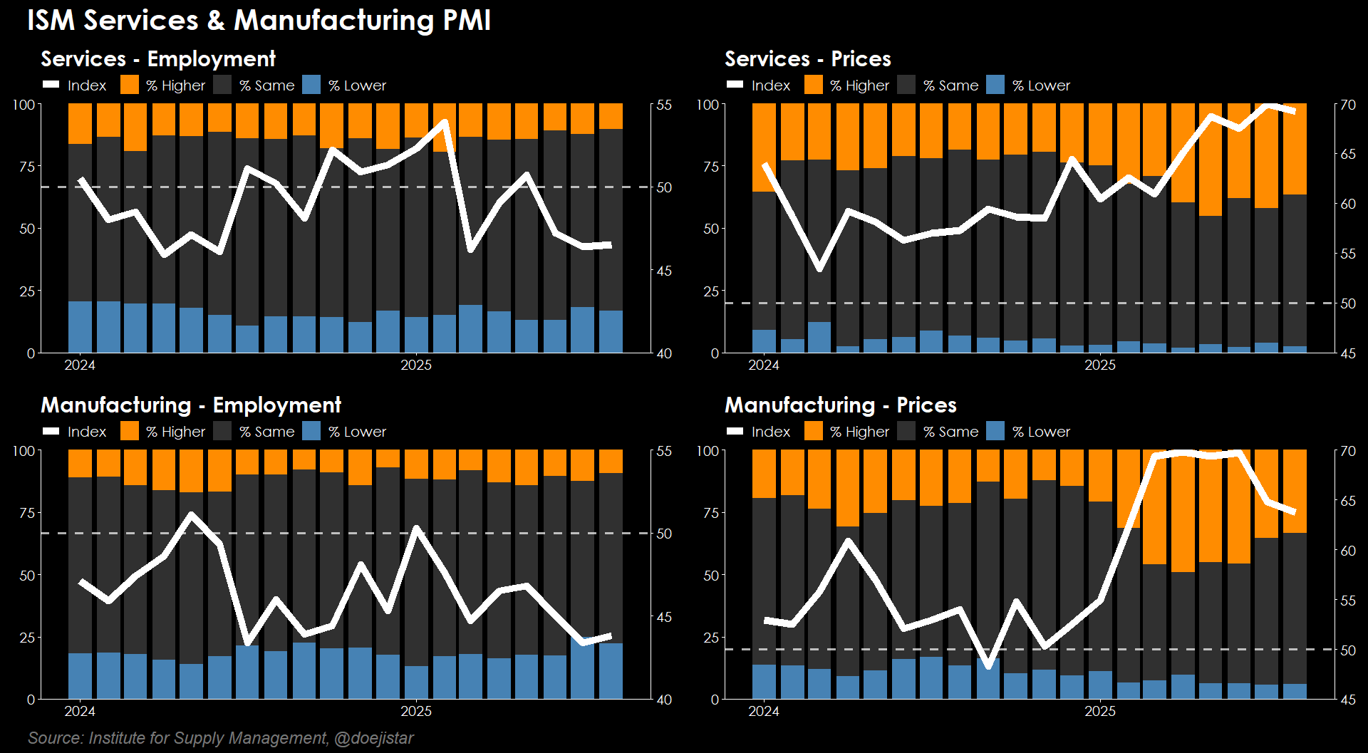 Putting it all together, 1) BLS data on the labour market doesn't appear to be as weak as it would suggest when looking at ADP, Indeed Job Postings and Claims data; and 2) business surveys show activity to be in decent shape while there are still some upside risks to prices.