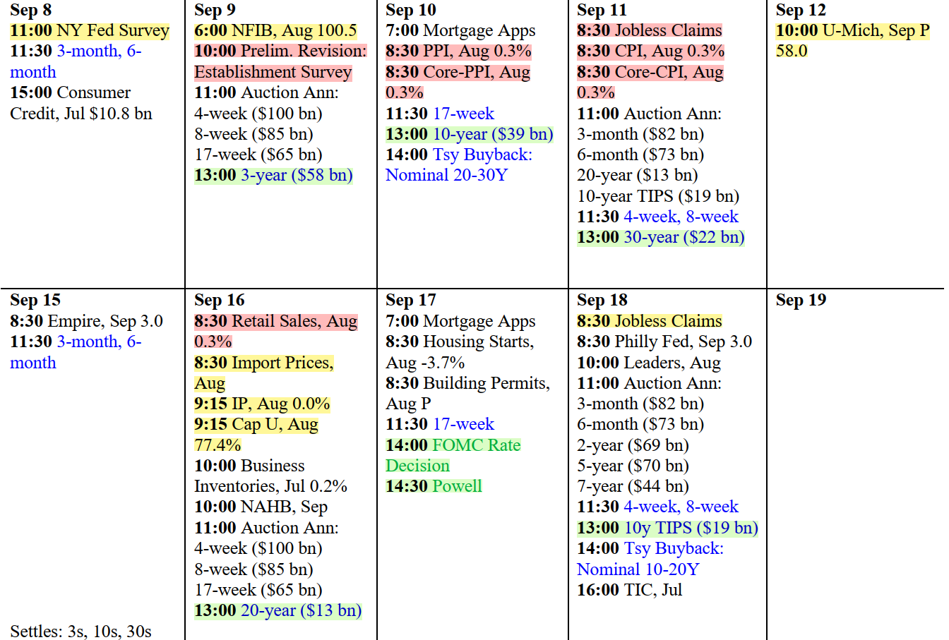 We still have a BLS NFP revision, PPI and CPI to get through this week which will likely have the last bearing on whether the Fed moves ahead with the 25bps cut as expected, and whether if it's a hawkish one should inflation come in hotter than expectations.