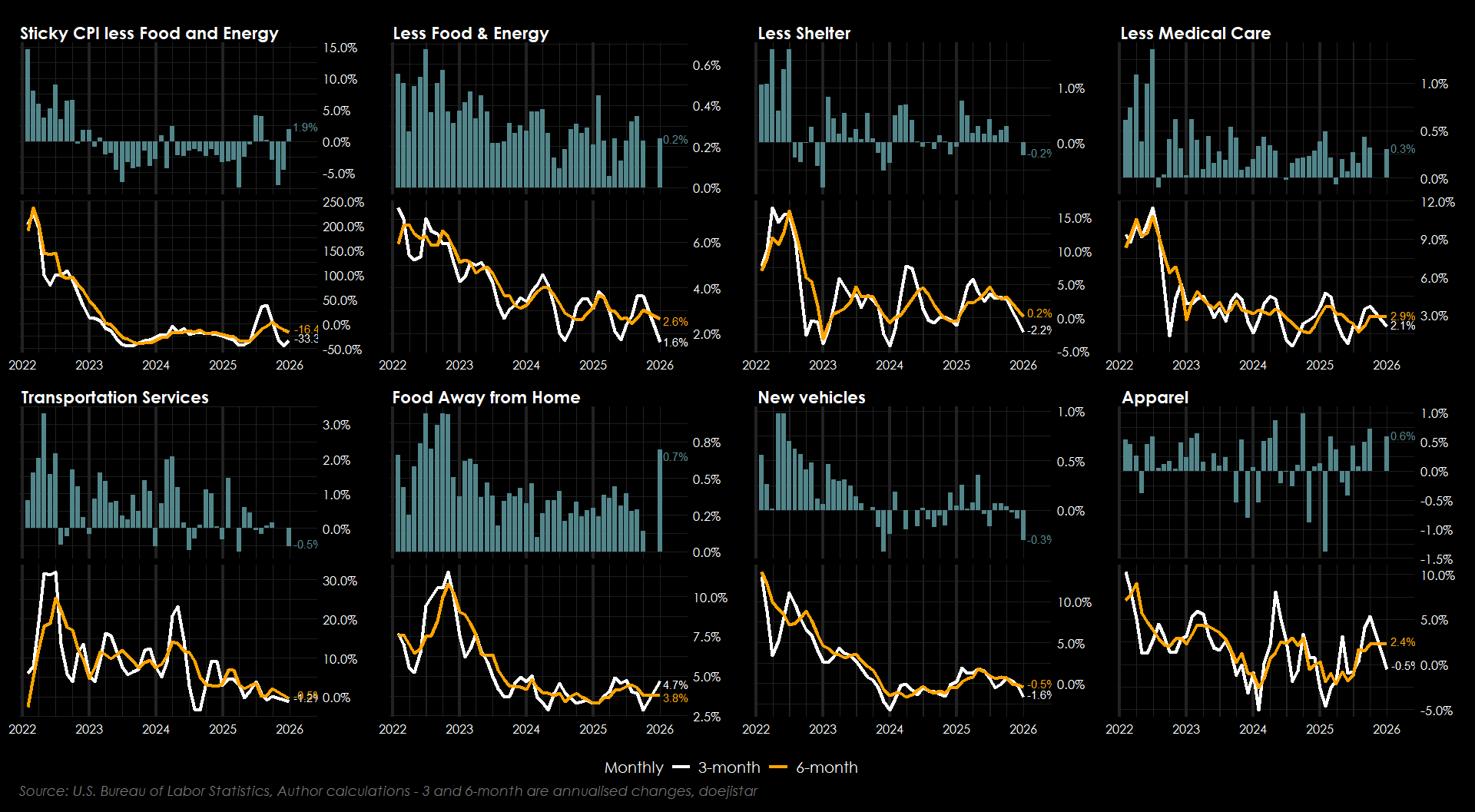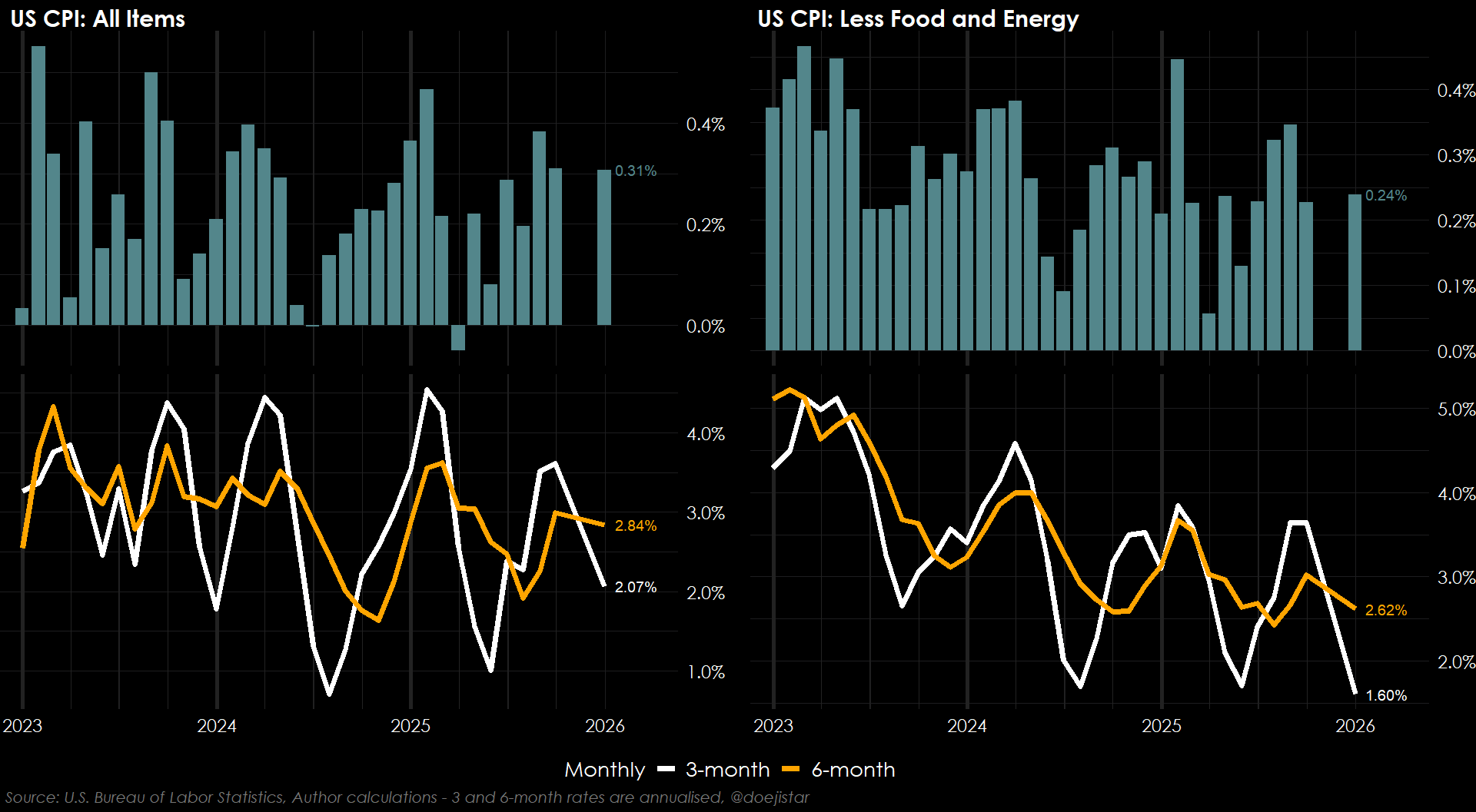 I would point out that I hold reservations about how much we can infer from the BLS data covering the Q4 period due to the Government shutdown. It has caused shortfalls in data collections that have forced the BLS to apply methods that could distort a true read of inflation. One known example was the zero'ing out of shelter inflation as a result of carrying forward prior month prices, while other examples suggest highly assumptive practices applied to other categories.