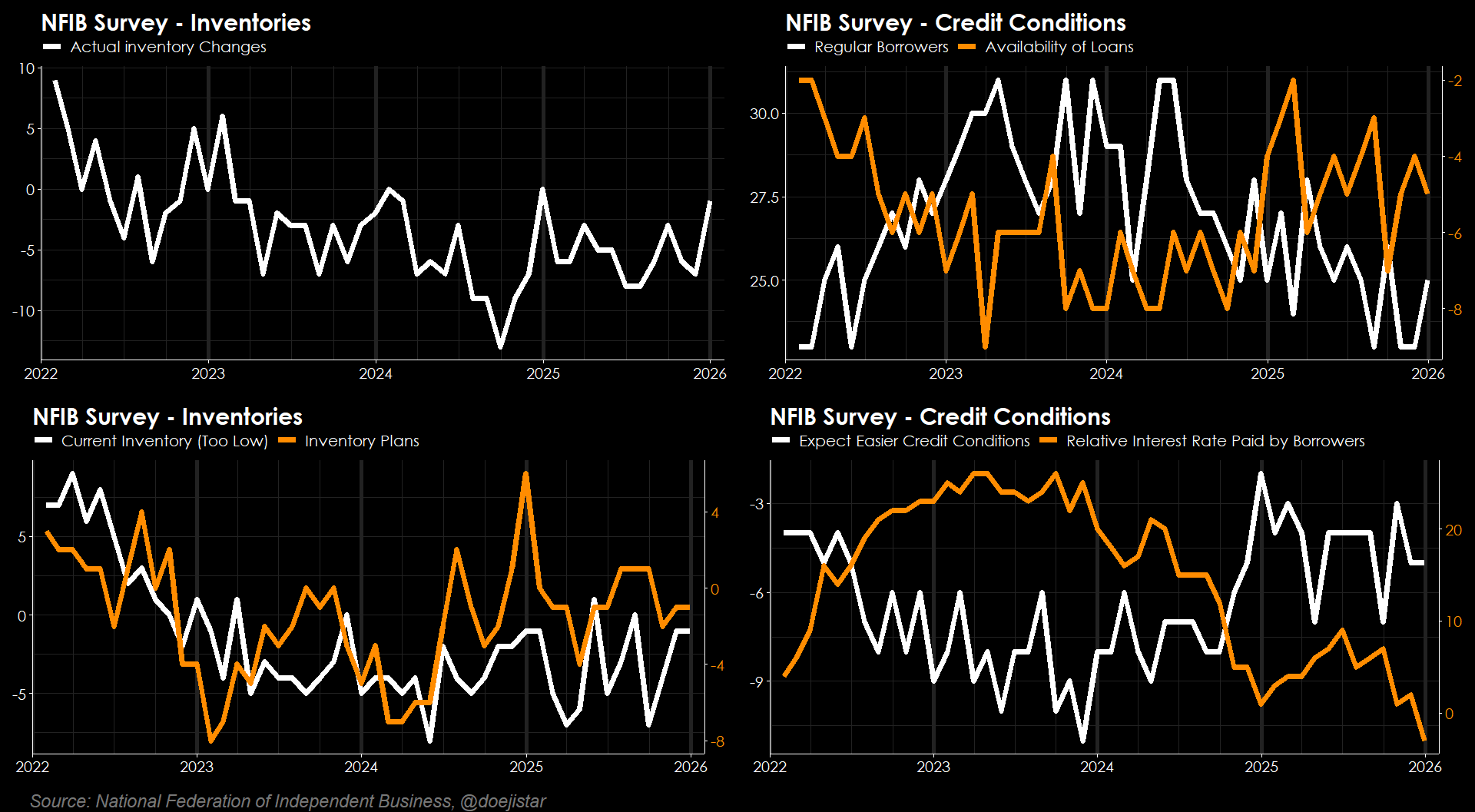 Inventory improved slightly to its best level of 2025, while credit conditions appear stable and loosening particularly with the Relative Interest Rate Paid by Borrowers (higher or lower compared to months ago) reading being the lowest in 5-years.
