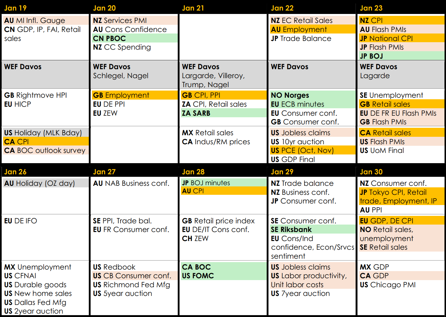 - Several central bank decisions this week with the BOJ likely to get the most attention. We continue to hear commentary the BOJ could/should be hiking faster than they have made out, even a hike as early as this or the next meeting. As I have reiterated for quite some time - in my weeklies, as well as on X and group chats, I doubt that the BOJ will be any faster than the market expects. The BOJ will get early indications over the coming month or so of how the spring wage negotiations is shaping up, and of which Ueda has stated that this is something they want to assess before any further policy decisions. Even so, inflation is expected to ease helped by base effects, and I think it's fairly unlikely that we will see a hike in the 1st half of this year.