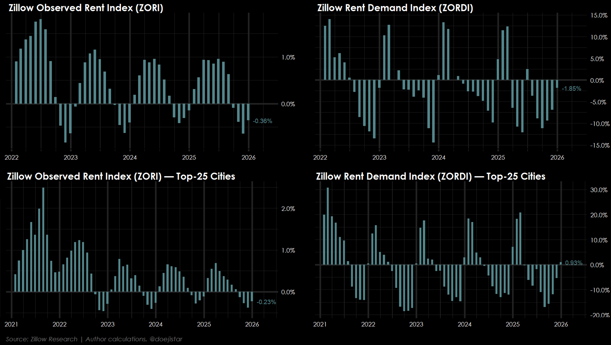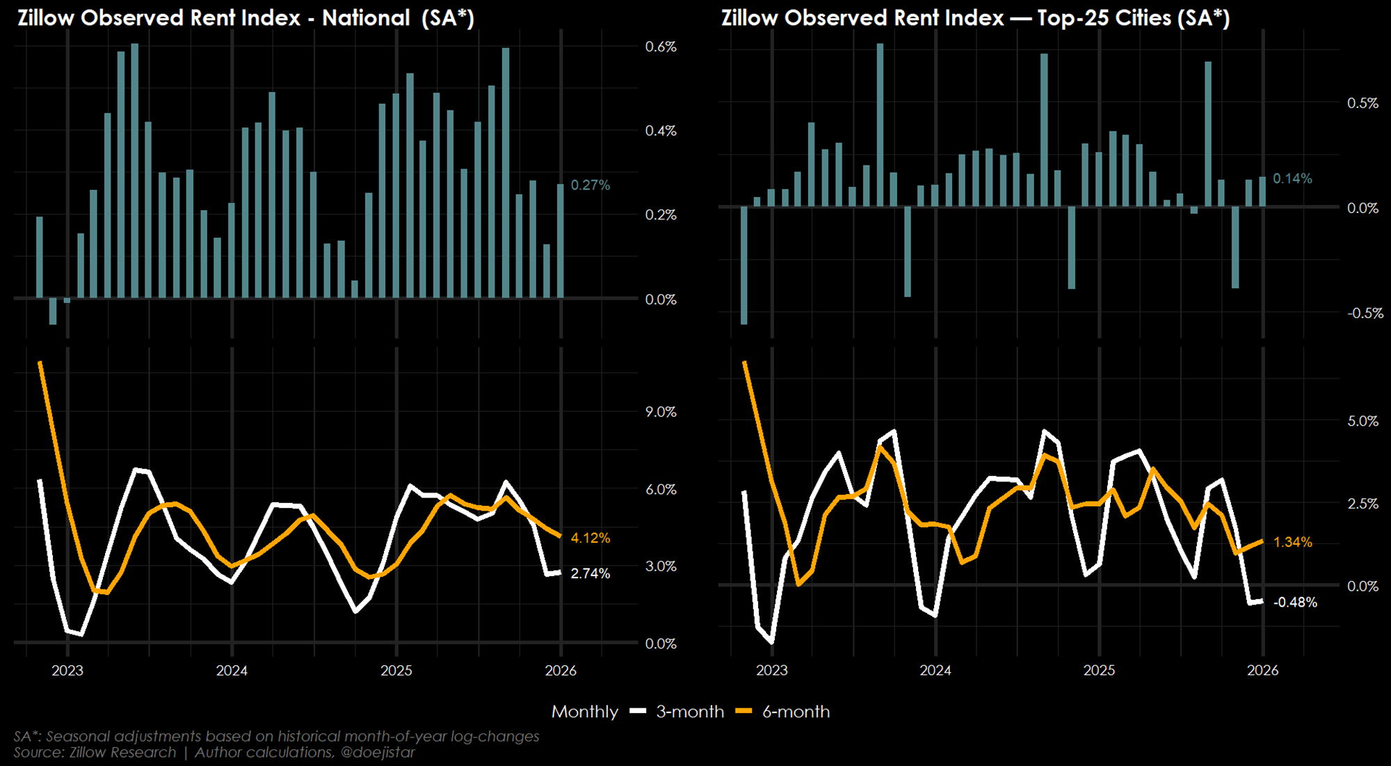 As for shelter inflation, Zillow data shows December as well as recent prior months to have been quite weak, but it isn't unusual for this period of year.