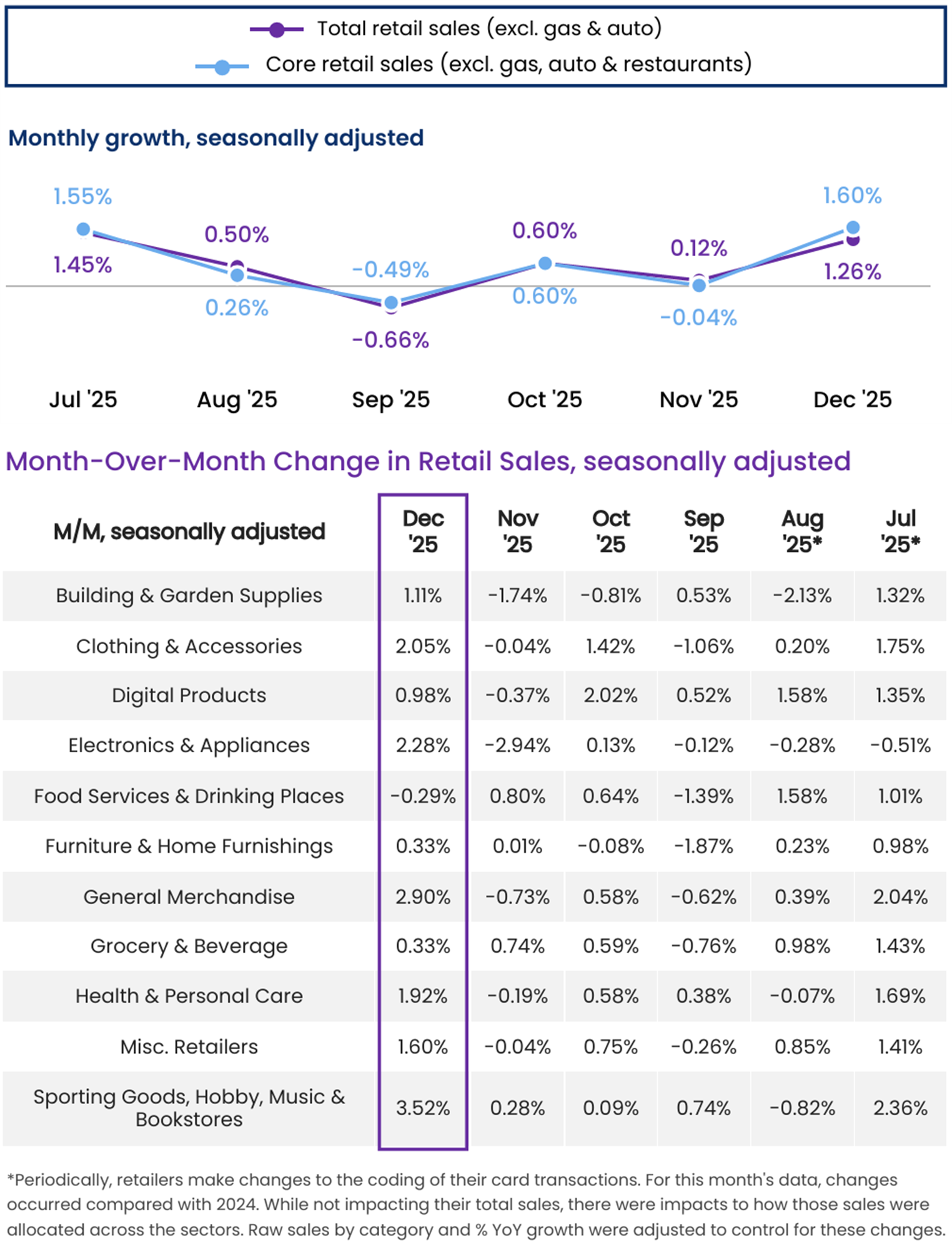 More up-to-date data from the National Retail Federation shows strong spending during December, the highest monthly increase since July.