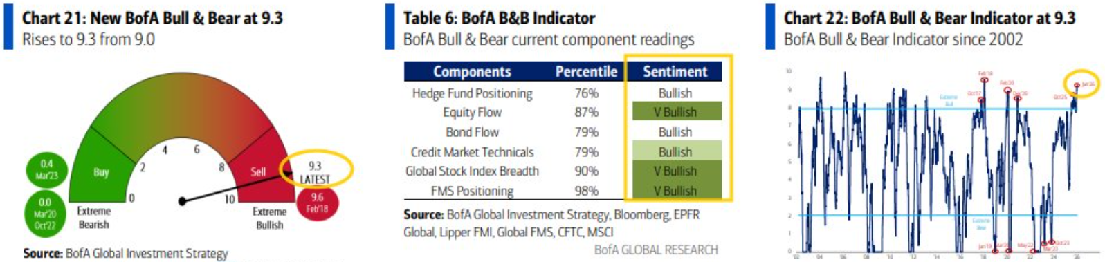 BofA's Bull & Bear rose further into extreme Bullish territory last week.
