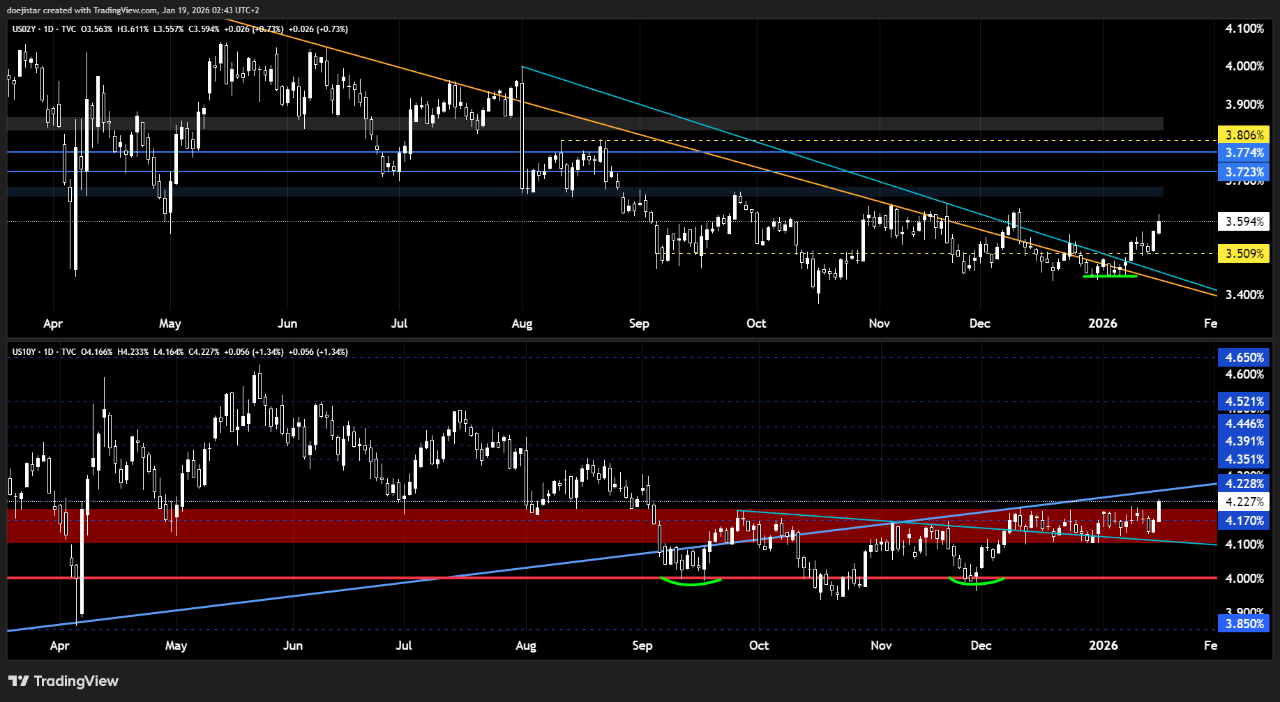 - USD bullish on strong fundamentals with numerous signs of reaccelerating activity and labour demand recovering while wage growth is still quite firm; we may soon be at a situation where the market begins to price out odds of a 2nd cut for this year completely.
