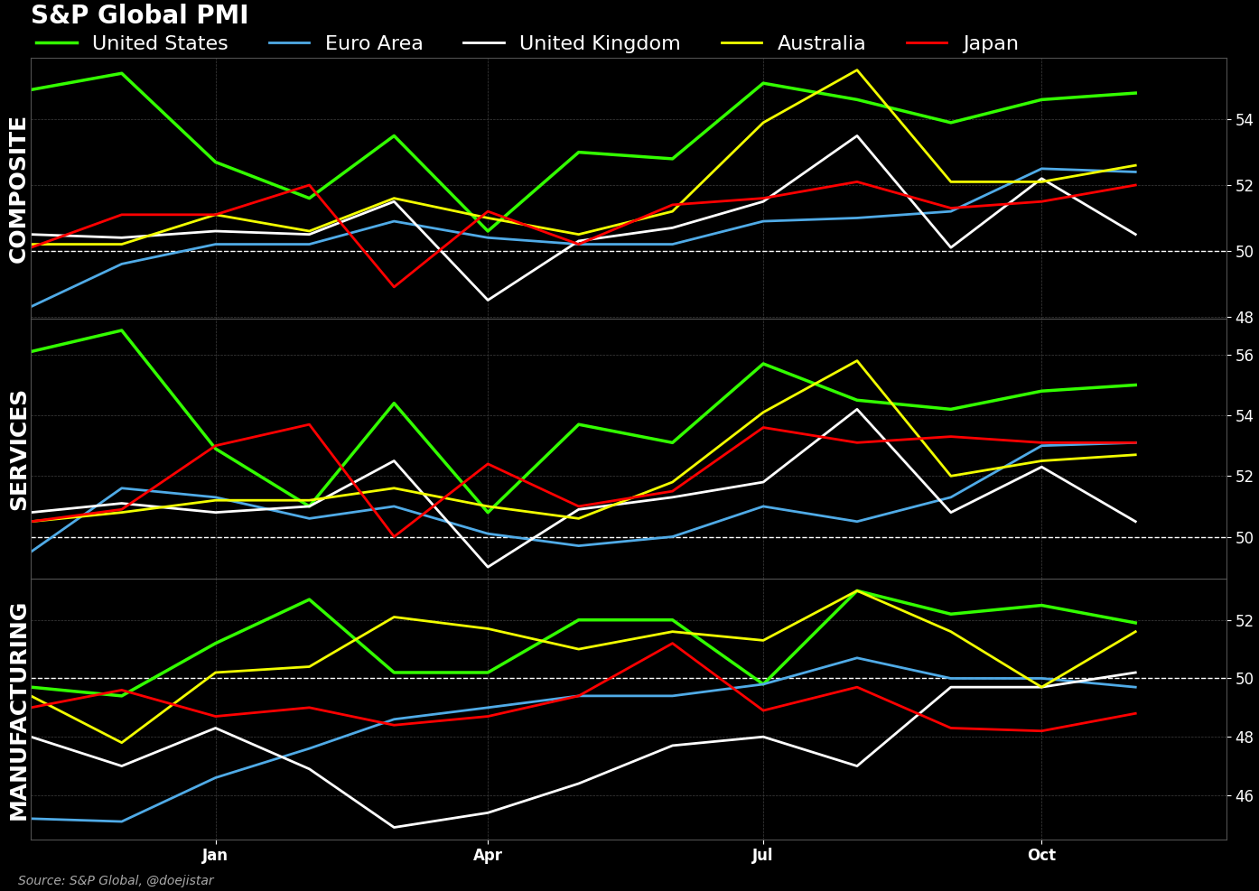 The composite index ticked higher to 52.6 from 52.1 in the prior month, service ticked up to 52.7 from 52.5, and manufacturing bounced back into expansion at 52.1 after dipping into contraction last month. New orders accelerated in November due to faster service sector growth and the first rise in manufacturing goods new orders in three months, and employment rose albeit at a slower pace.