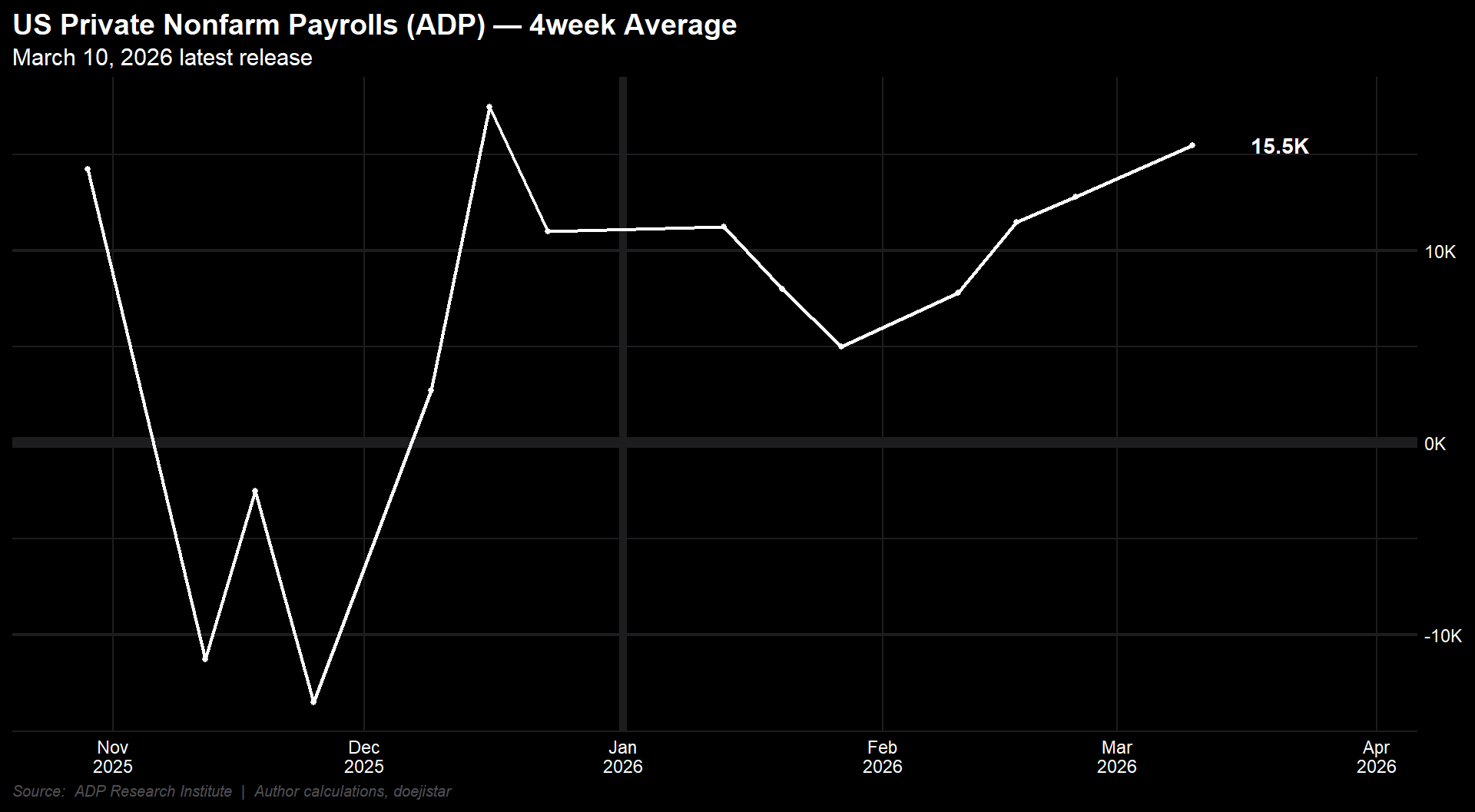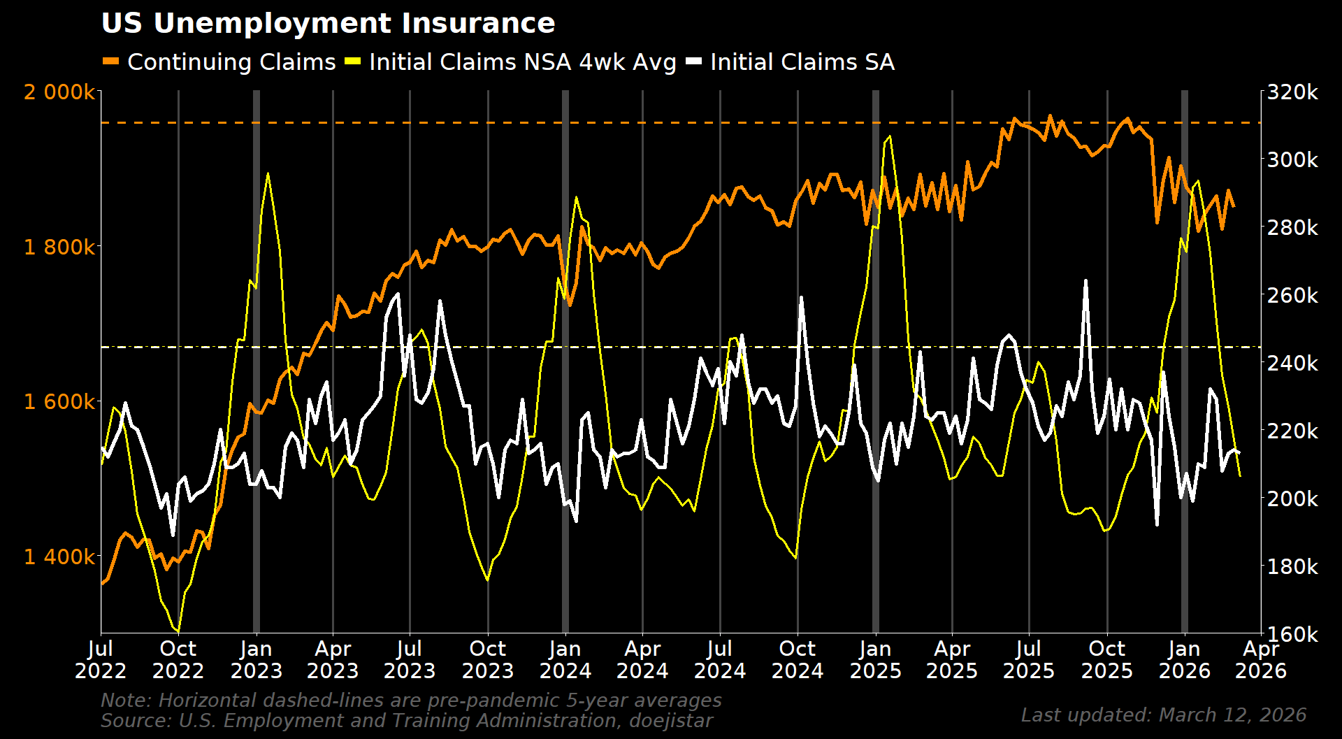 ADP's weekly payrolls data also suggests slightly firmer hiring so far this year, compared to late last year, and Unemployment claims continues to be steady at low levels.