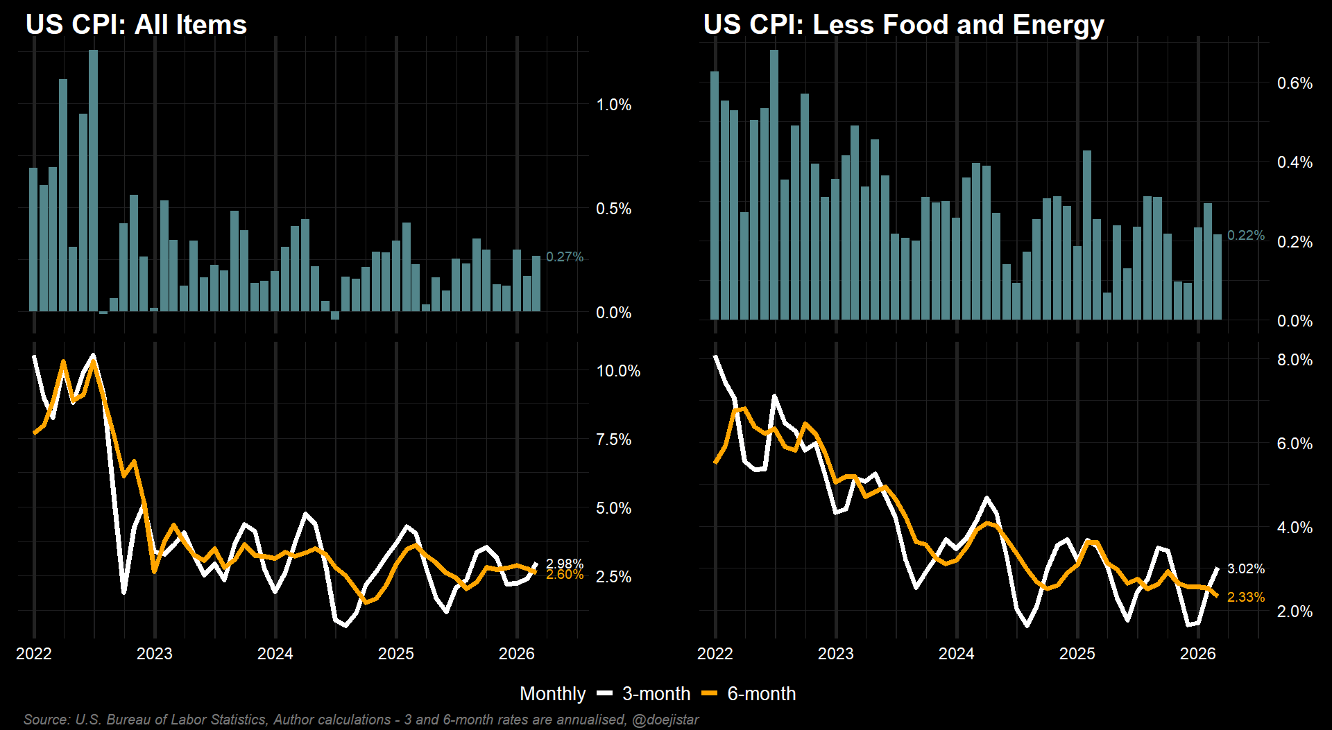 CPI was in-line with MoM expectations of 0.3% headline and 0.2% core with the 3-month trend continuing to pick up.