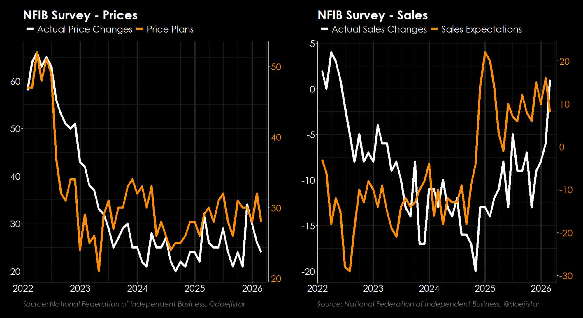 On the plus side, more small businesses have been reporting positive employment changes for a 2nd straight month, paying their employees more, both of which appears to line up with the big rebound in Sales, observed earlier.