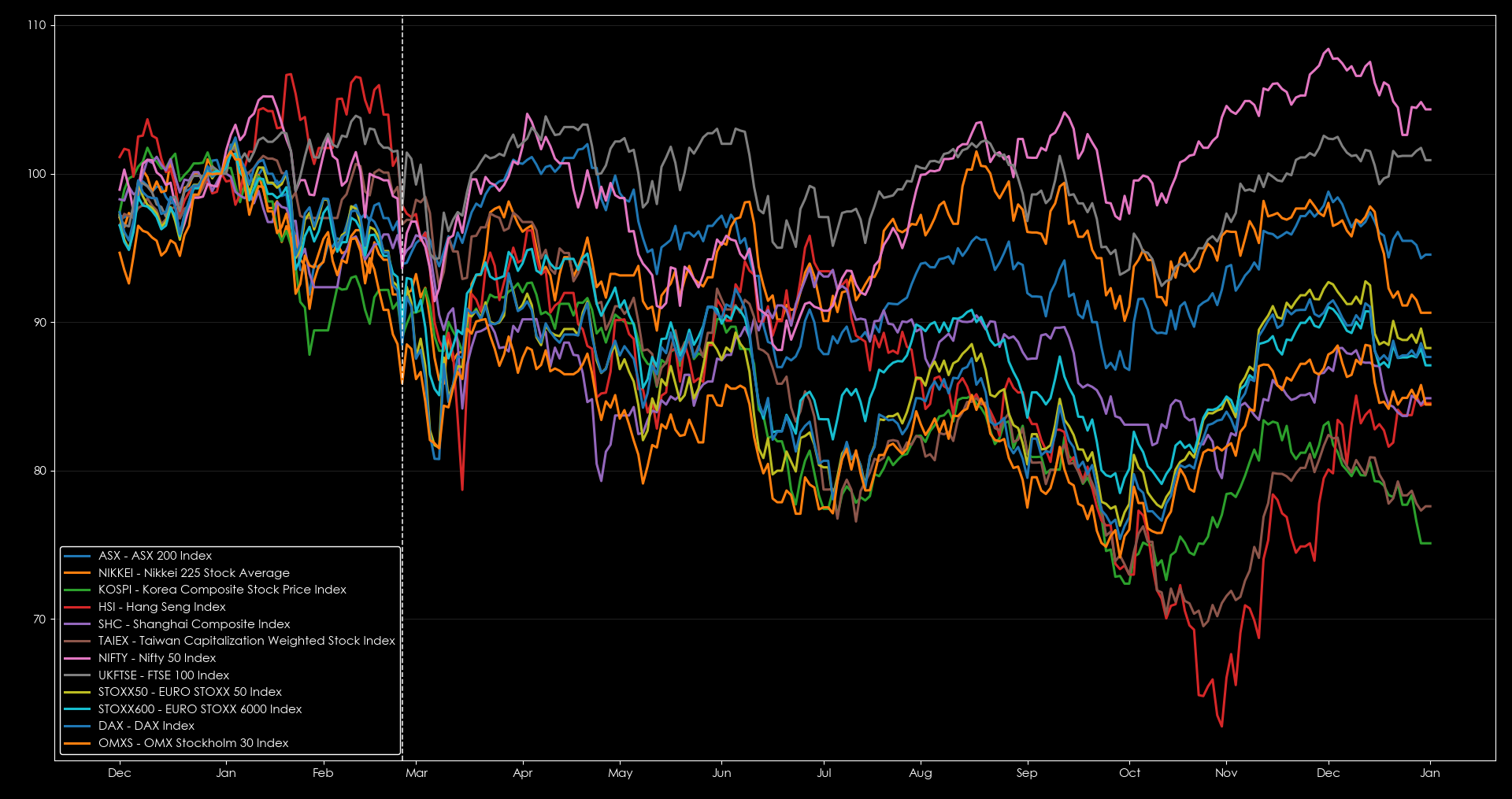 Asian markets were the worst hit, and European equities did not fare much better, and only India's NIFTY and UK FTSE held steady during that tumultuous period. Interesting to see that the NIFTY had performed relatively well during that period given recent reports of ships destined for India transiting through the Strait of Hormuz.