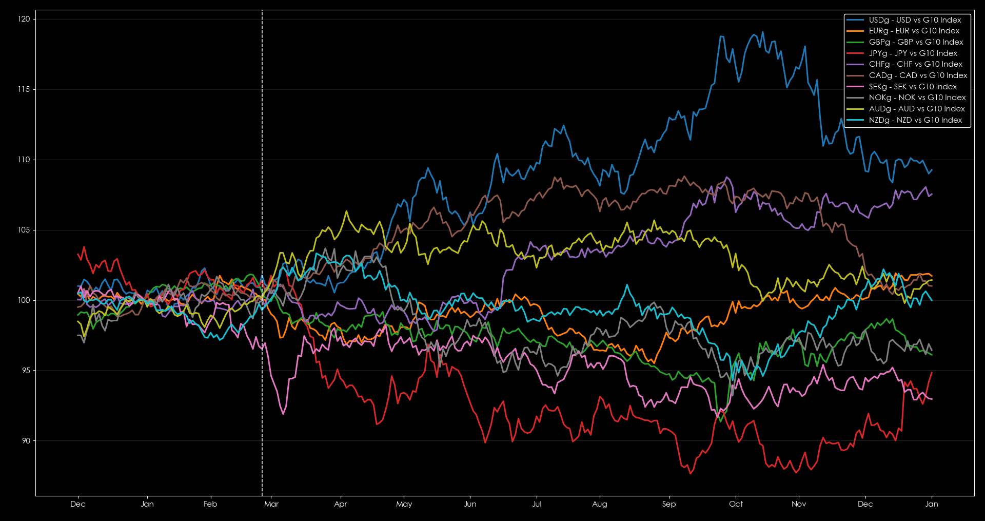 The dollar was a clear winner throughout 2022 until we saw a re-steepening in the US yield curve at the end of the year. CAD was a strong performer, as was the CHF later on, and JPY was a notable loser. Lessons from 2022 would point to long bear flatteners and long USD / short JPY as the key themes to focus on.