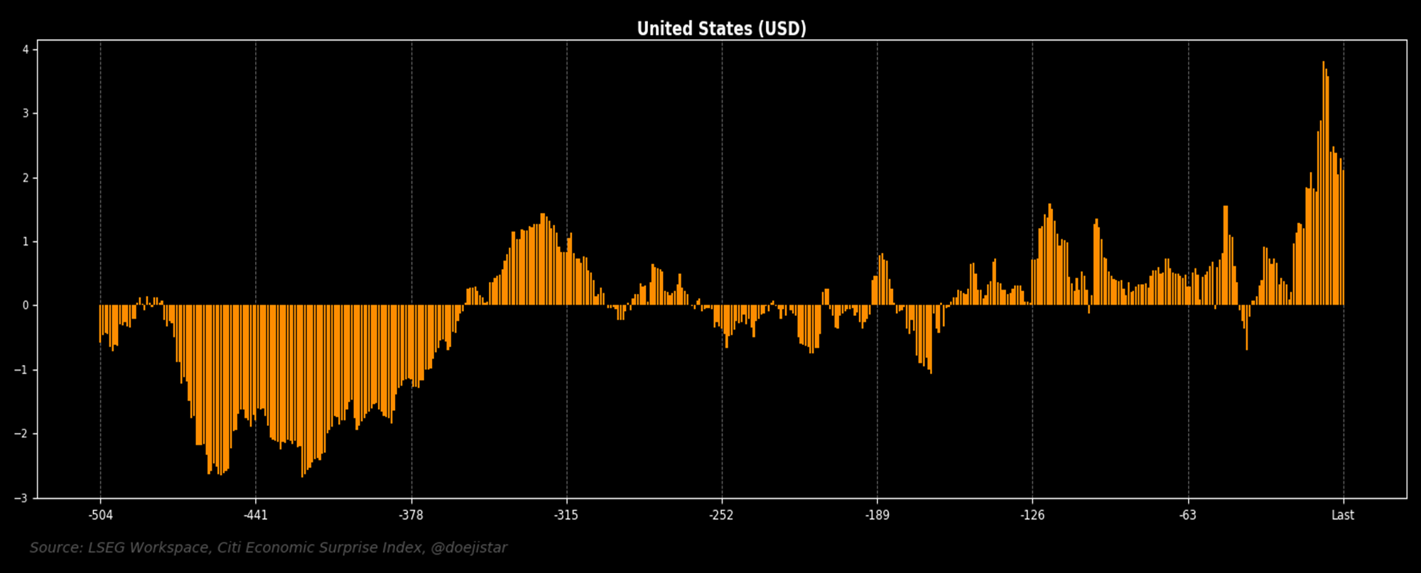 To set the scene for this week's notes, we start by looking at the US Economic Surprise Index, and if it is any decent gauge of economic momentum, the US economy has made an impressive start to the new year. The above shows a standardised version of the surprise index over the last 2-years, of which has risen to nearly 4sd at the end of January and currently settles at roughly +2sd above its trailing 1-year average.